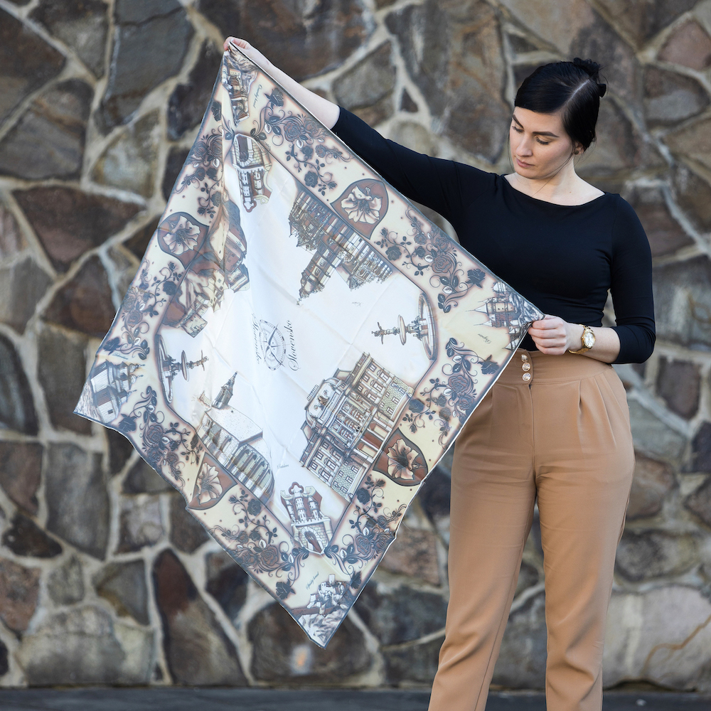 Na šatke je možné nájsť pamiatky zo všetkých kútov Slovenska. Jedná sa o malú časť architektonického dedičstva na Slovensku. Od starovekých stavieb až po modernu resp. funkcionalizmus. Na šatke je možné nájsť napríklad Slovenské národné divadlo, Bojnický zámok alebo Trenčiansky či Spišský hrad a iné.