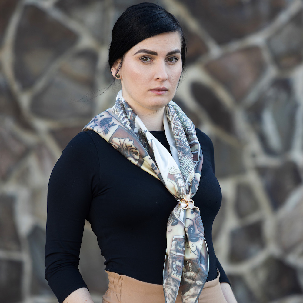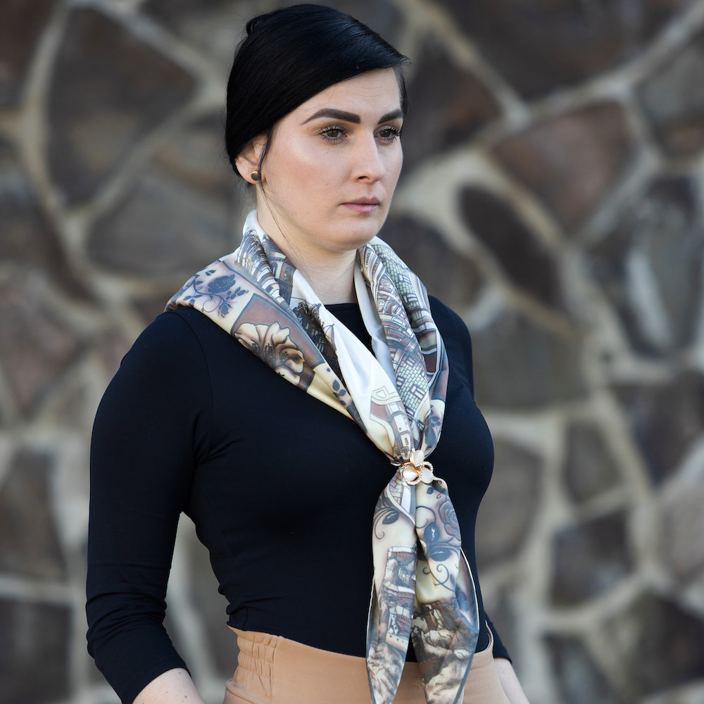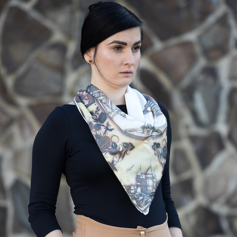 -klasická šatka okolo krku – vďaka vlastnostiam hodvábu je vhodné nosenie celoročne