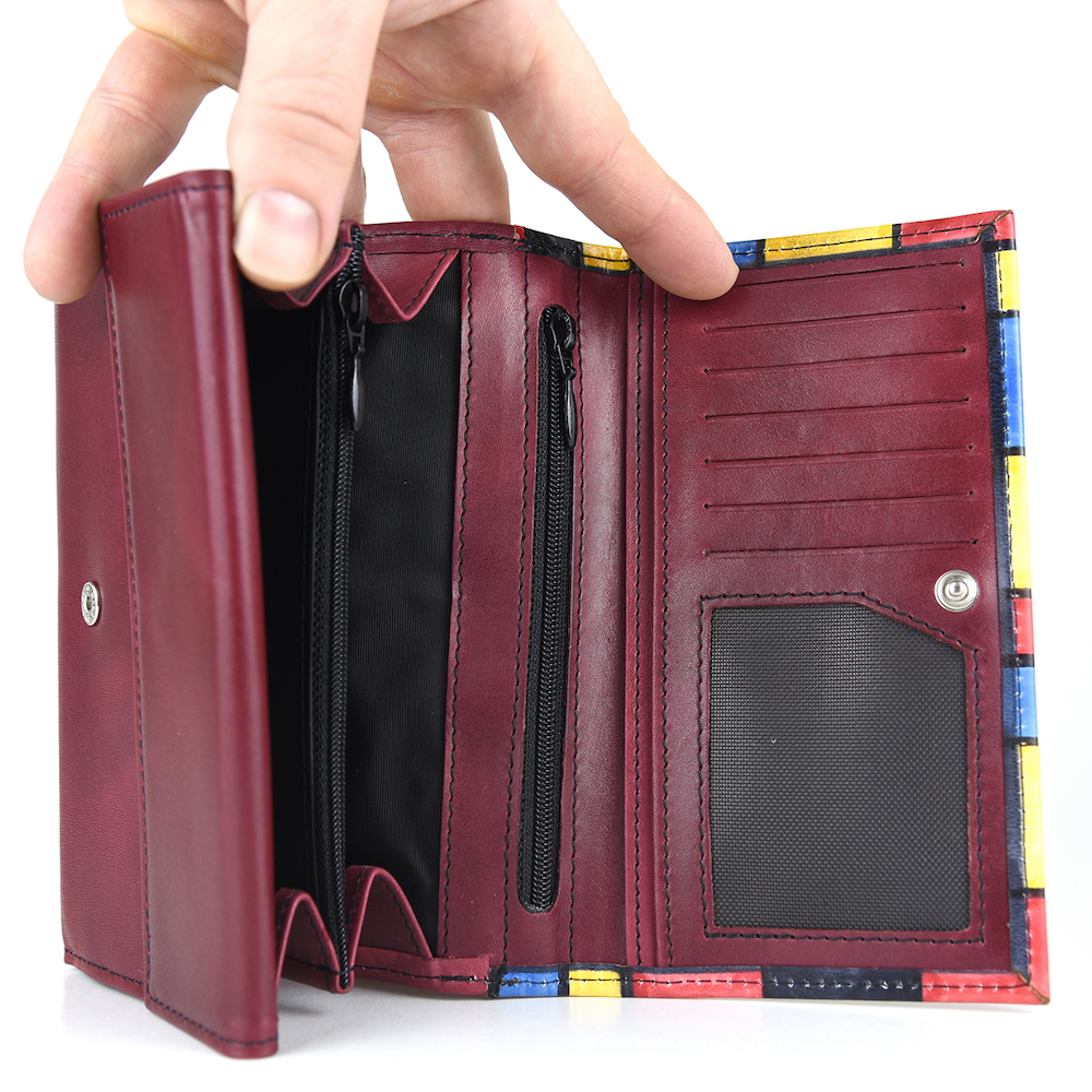 Elegantná a originálna ručne maľovaná peňaženka vyrobená z pravej talianskej kože. Existuje len jeden kus. Každý jeden kus ručne maľovaných výrobkov je umelecké dielo. Peňaženka je neopakovateľný originál s nádhernou maľbou. Spojenie unikátnej technológie s výtvarním umením vzniká unikátne a nenapodobiteľné dielo v podobe maľovanej koženej peňaženky s originálnym motívom.